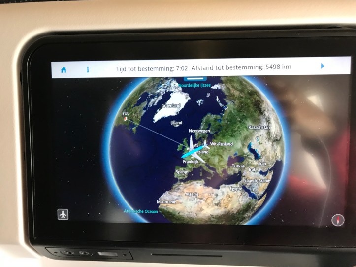 Het mediasysteem in dit vliegtuig is serieus mooi! Je kunt via het schermpje meekijken wat de piloot ziet vanuit de cockpit of het vliegtuig volgen en allerlei weetjes over de grote plaatsen waar je over vliegt lezen. En nog een tiental opties. Echt vet! De nerd in mij is happy!!!