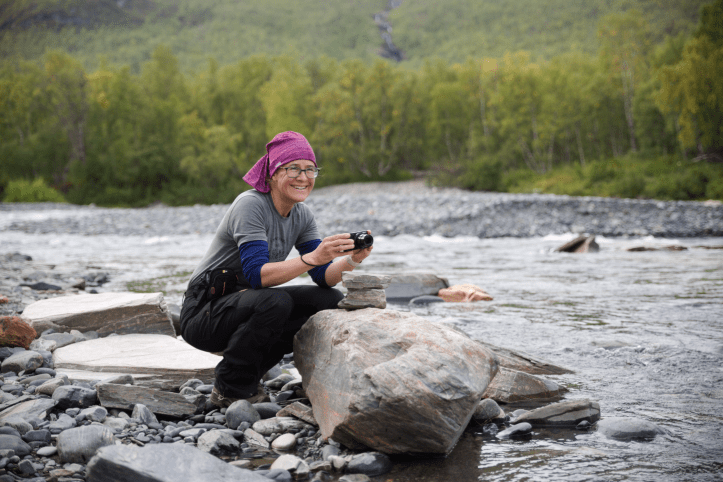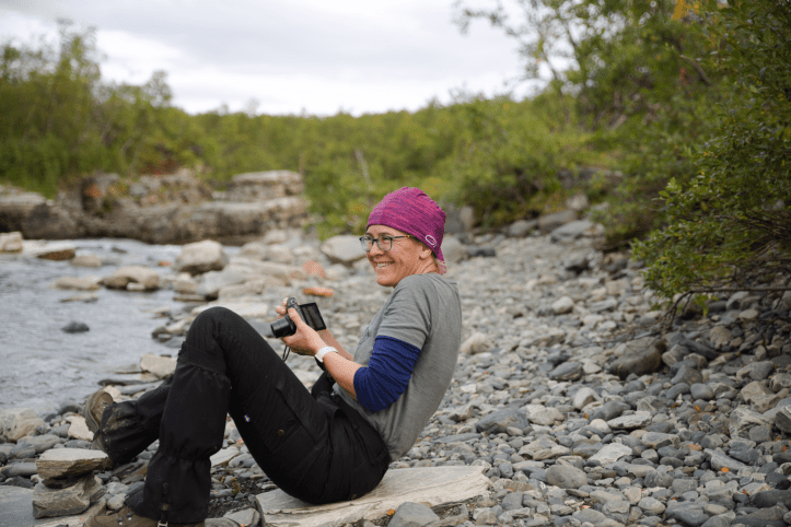 We overleggen en zijn het snel eens. We lopen door tot Abisko en kijken of we bij de eerste ontvangst van 3g of 4g een slaapplaats online kunnen boeken. Dan maar een nachtje korter kamperen. Trouwens… haren wassen klinkt ineens wel heeeeel aantrekkelijk! 🙂