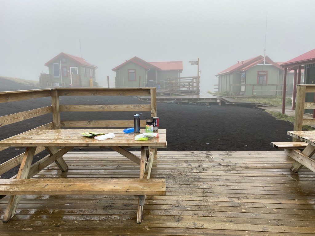 Vandaag willen we om 7:00 uur weg wandelen, want er is een bus terug nasr Reykjavik te halen. Die vertrekt om 15:00 uur vanuit Þorsmörk. Omdat we niet exact weten wat we gaan tegenkomen onderweg en het bord bij de hut de inschatting van 7-8 uur geeft.