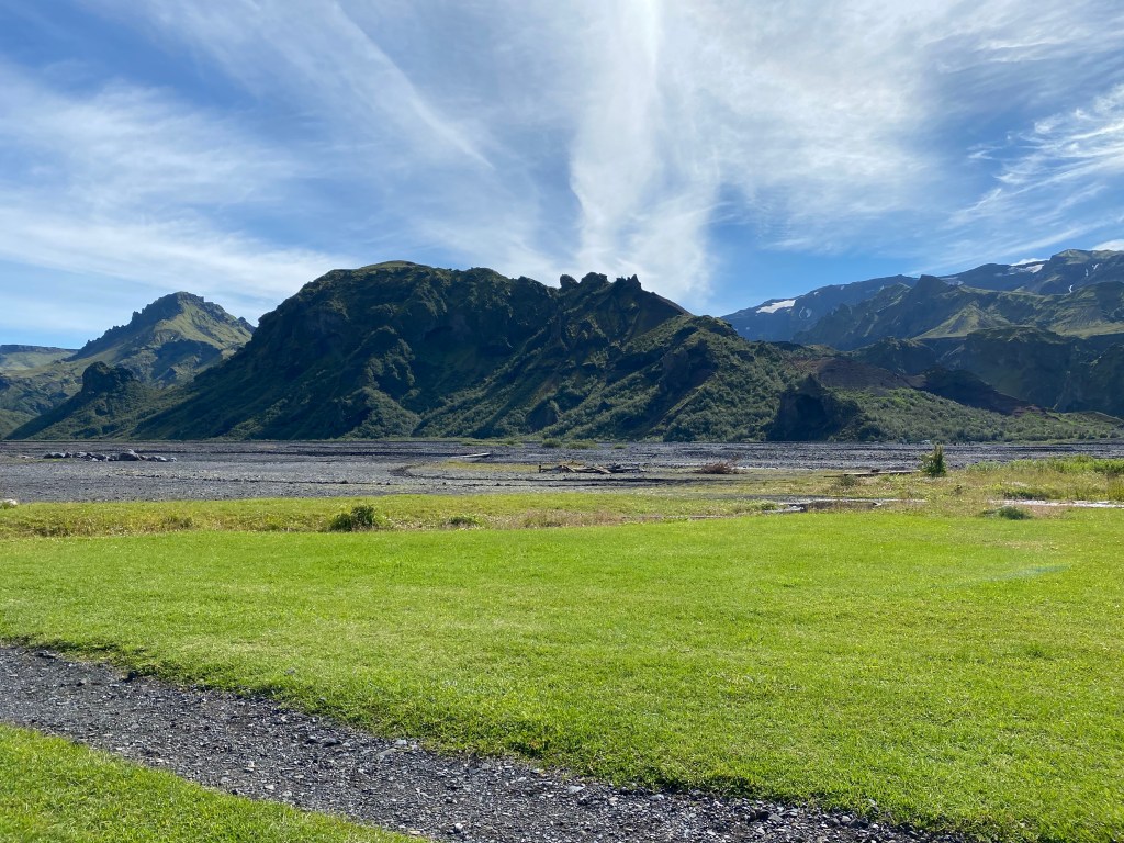 Voorbij de lavavelden landen we ineens weer in een groene vallei. Elke keer een ö en ä momentje hier in IJsland.