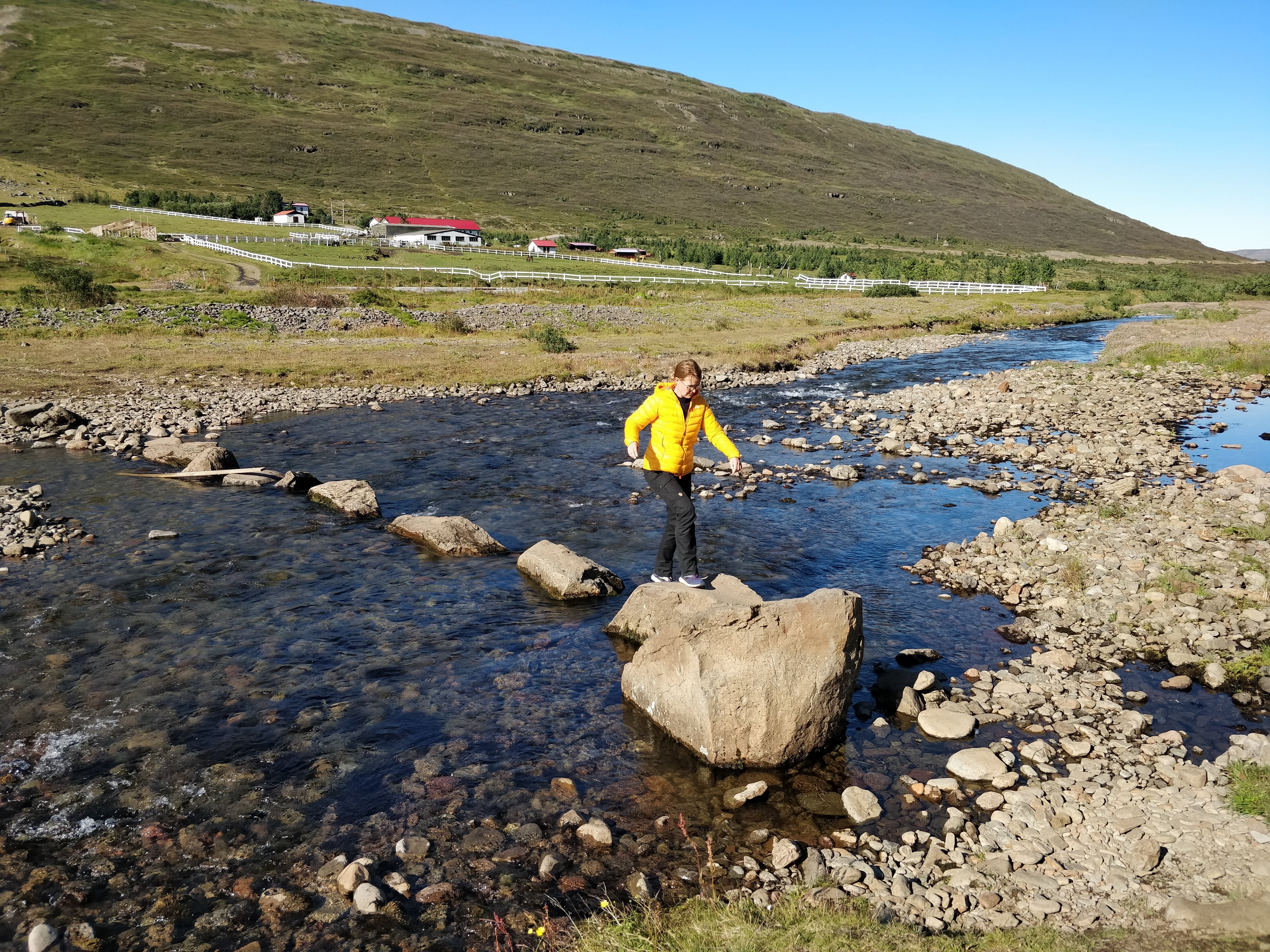 Via de slingerweg langs de kust rijden we naar de Camping “Heydalur”. Hier hebben ze een natuurlijke hotspring en een ietwat gecultiveerde versie. Beiden ca. 40 graden warm met uitzicht op de bergen om je heen.