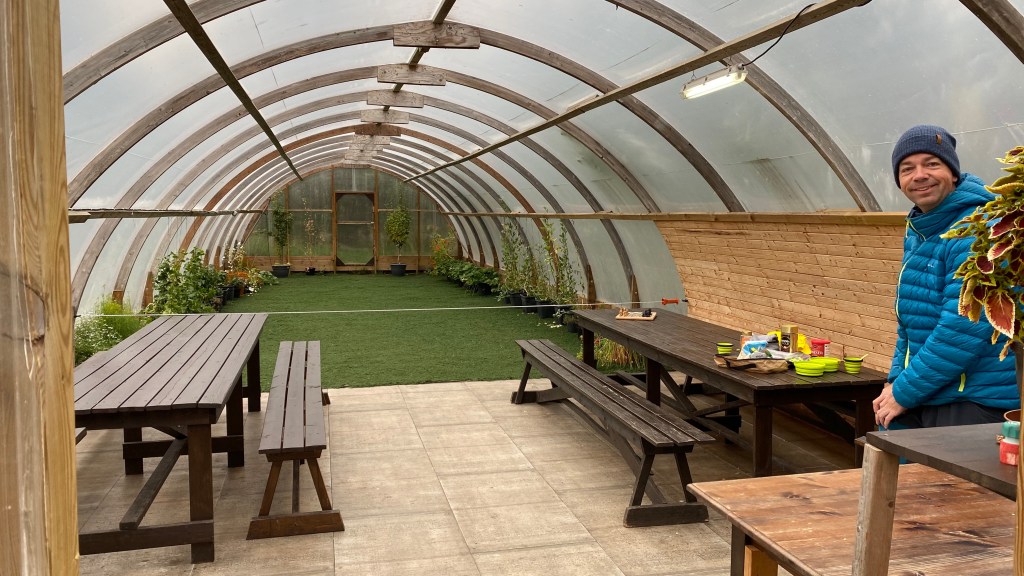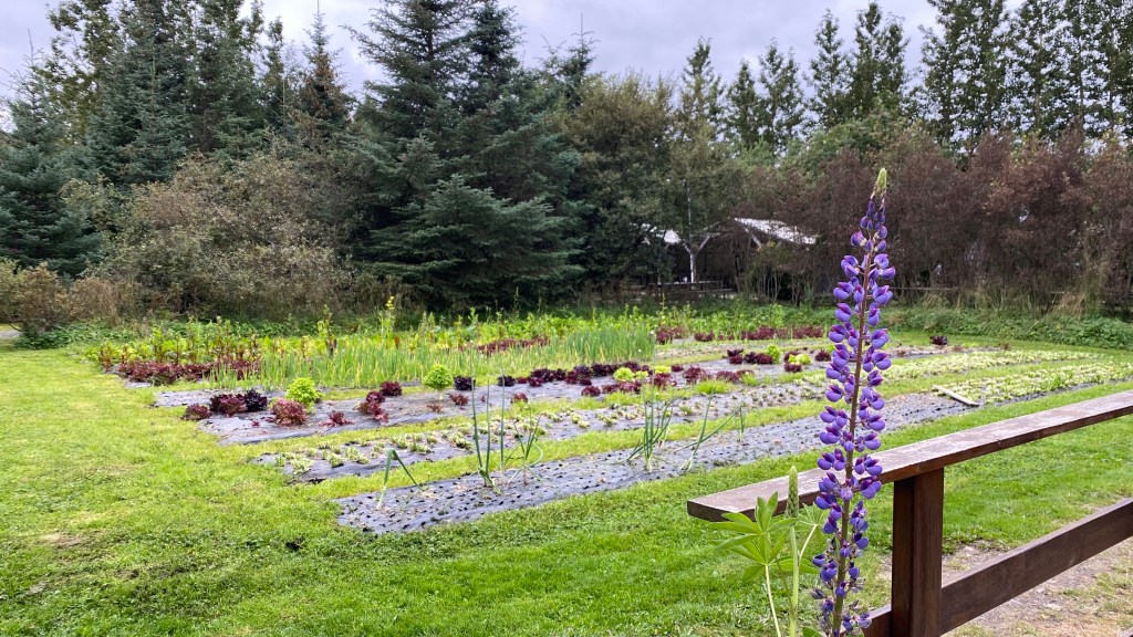 We rijden dus nog wat verder door richting regio Reykjavik en vinden een super leuke locatie. Met een kas waarin twee grote picknicktafels staan en een keuken. Met een waterkoker! Wat een luxe. We mogen een plek kiezen op het tentenveld of kampeerplek 20. Dat laatste wordt het. Een soort tuin met struiken en boompjes voor ons alleen! Super gezellige eigenaar, waar we nog een tijdje mee gekletst hebben.