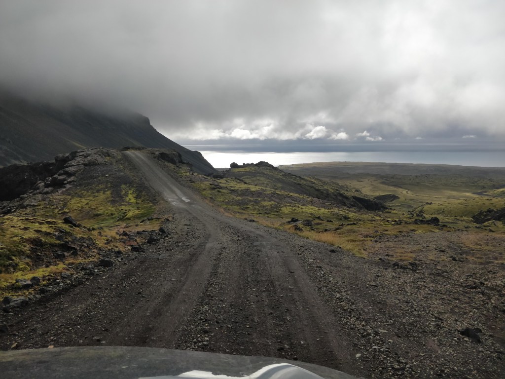 Daarna rijden we richting de F570 om het lava landschap over te steken. Tot de top van de Snæfellsjökull en langs de andere kant weer naar beneden. Mooi en spannend en goed blijven opletten. Spleten, geulen en grote keien. Soms mag het geen weg genoemd worden 🙈