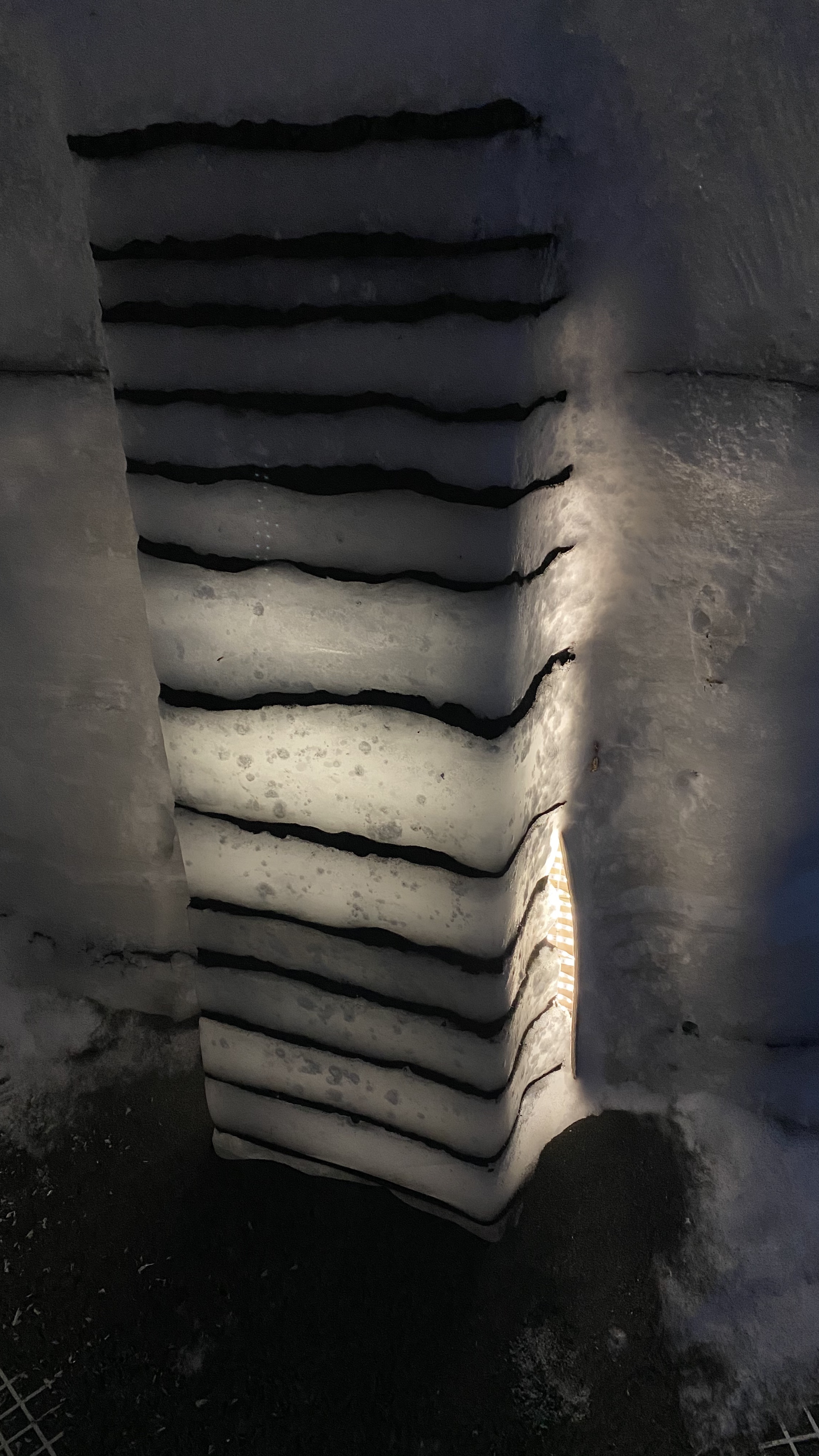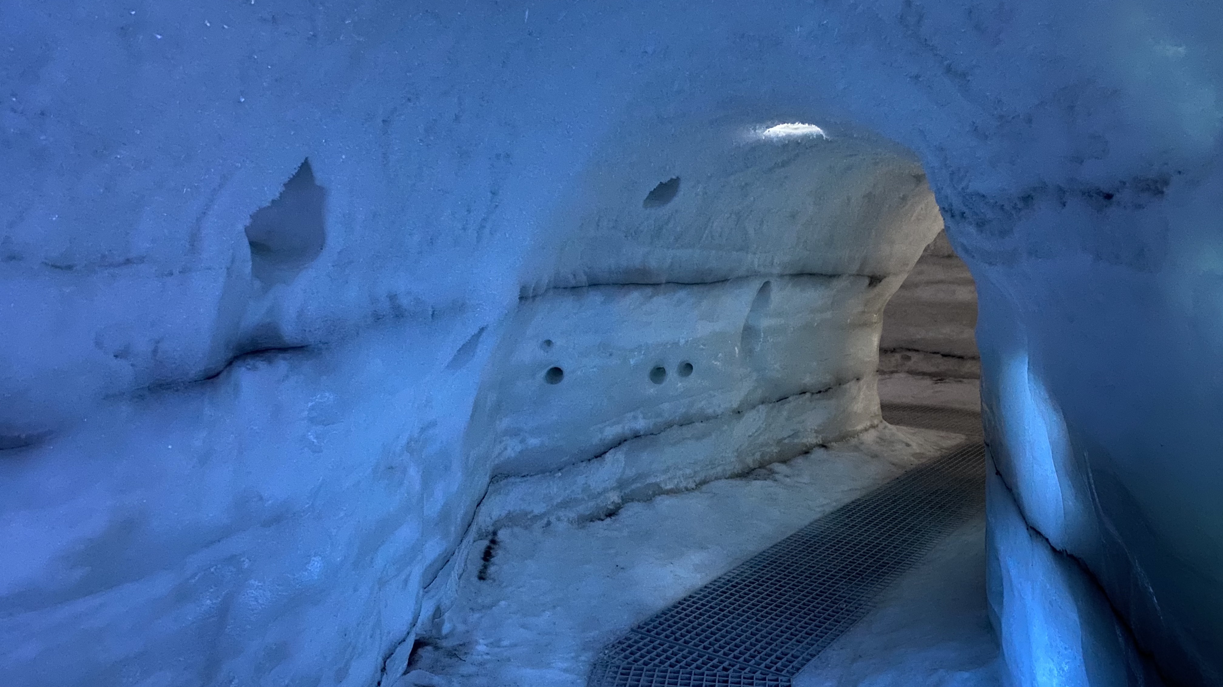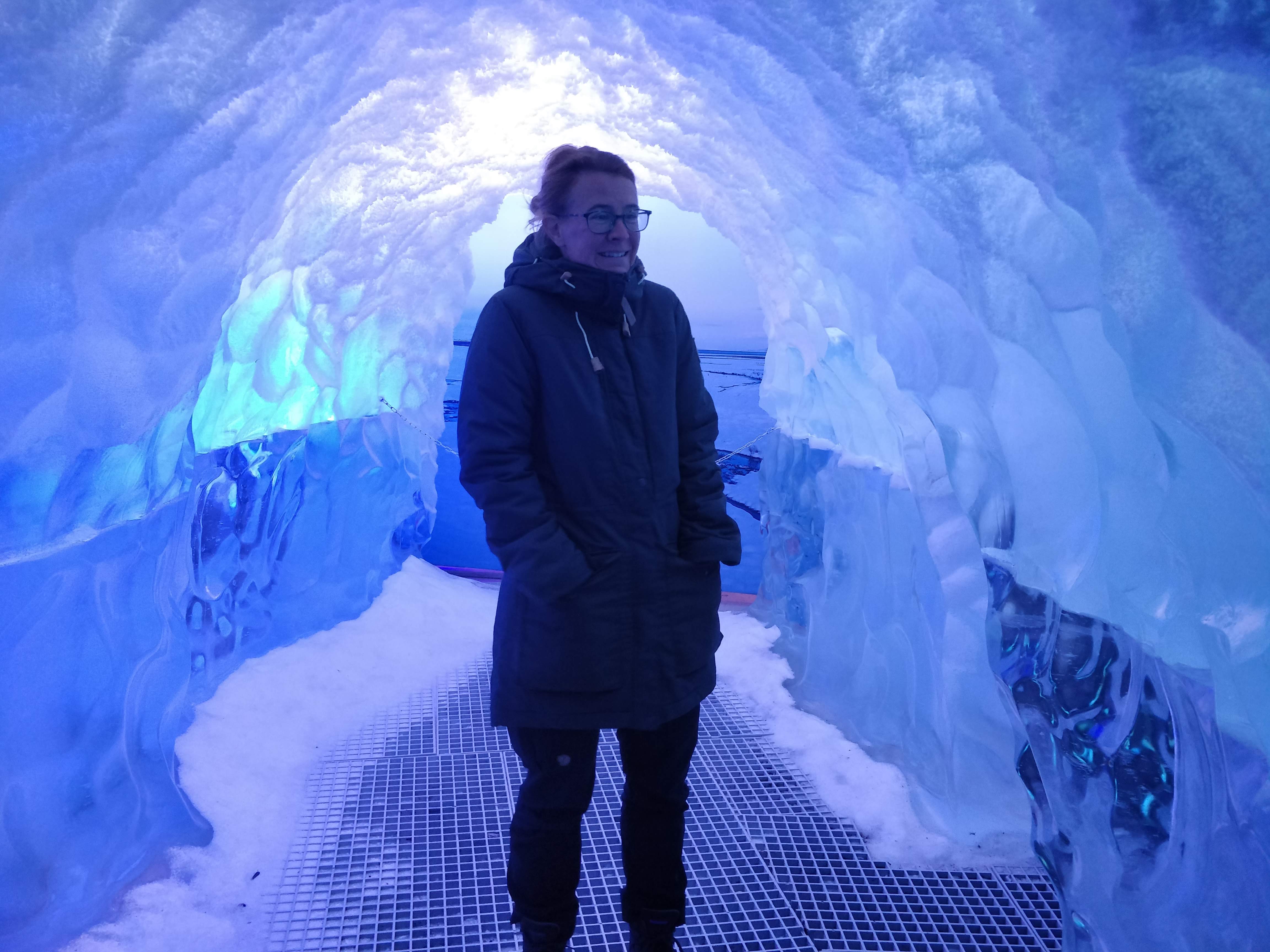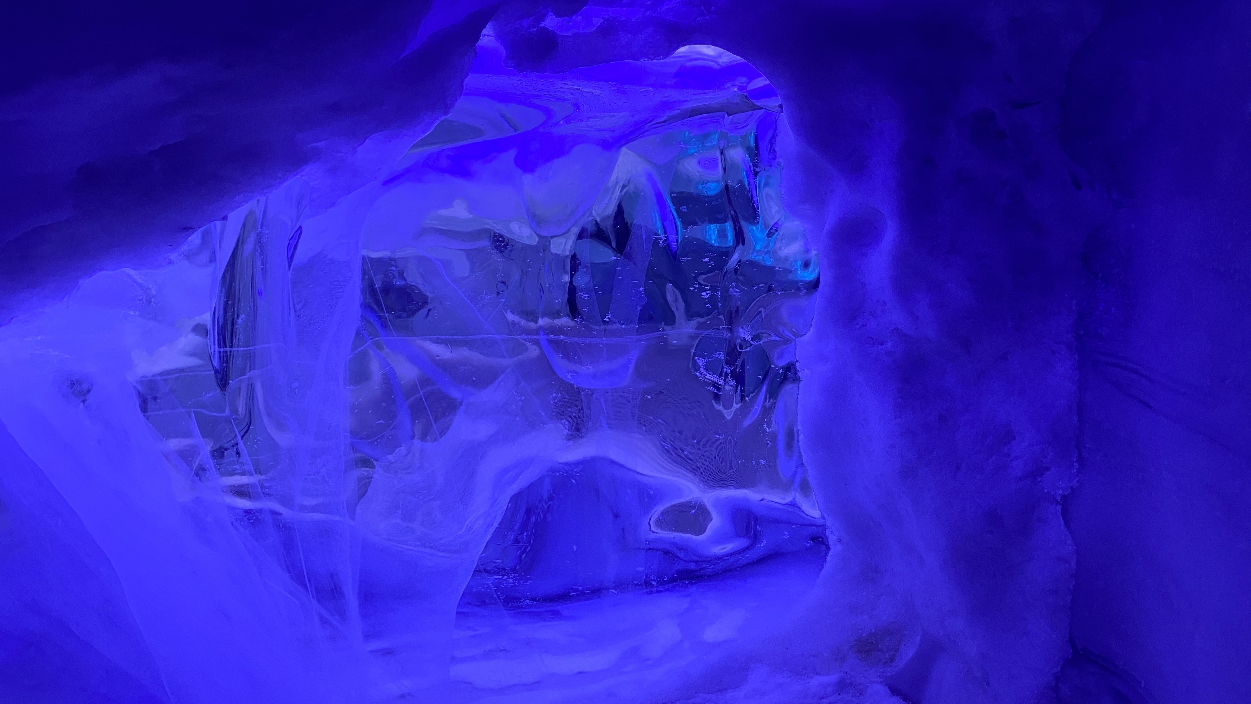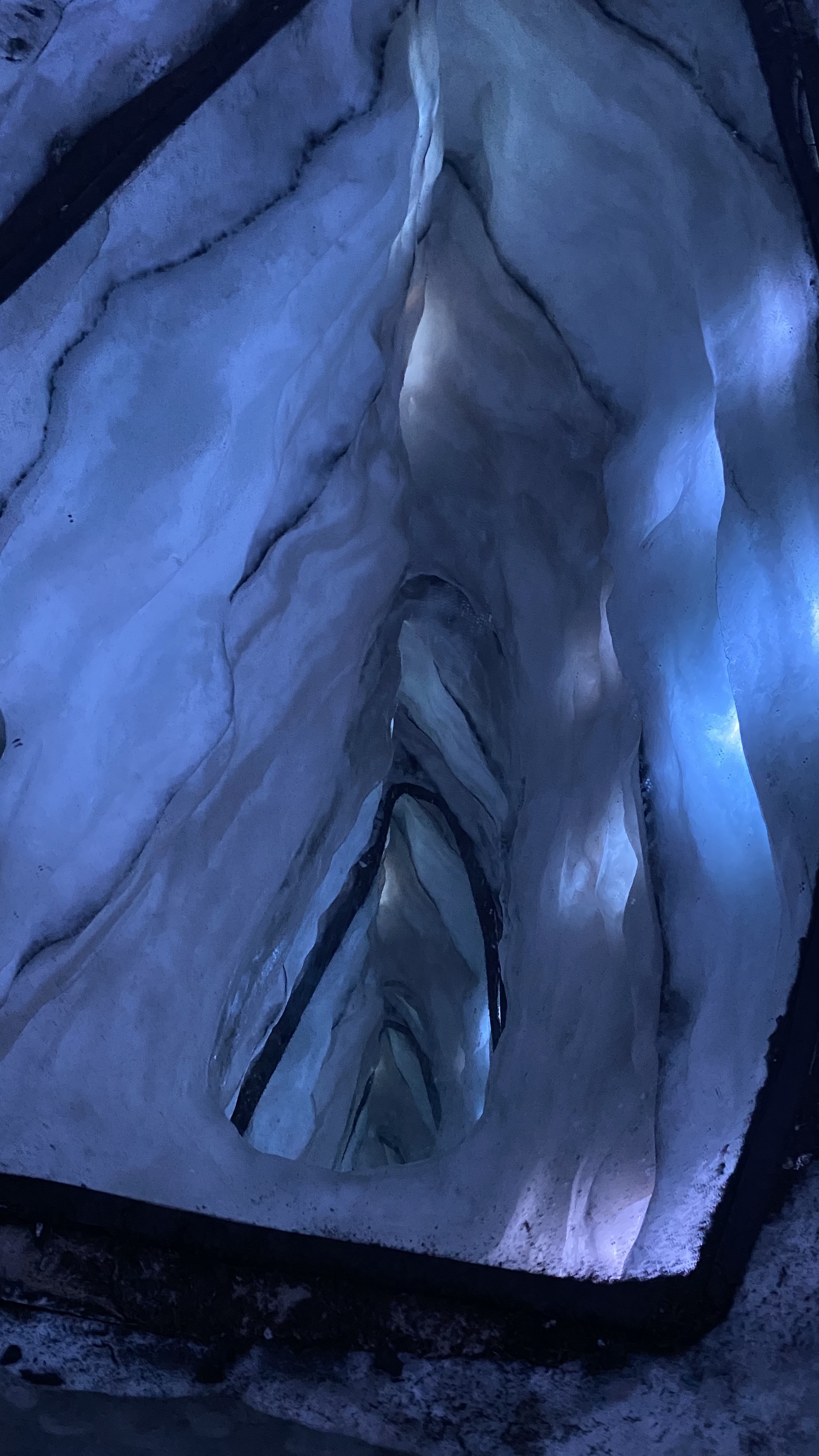 En!! Ze hebben een IJsgrot. Alsof je door een gletsjer loopt. Het is er -15 graden. Best wel koud, dus gauw onze jassen opgehaald uit de auto.