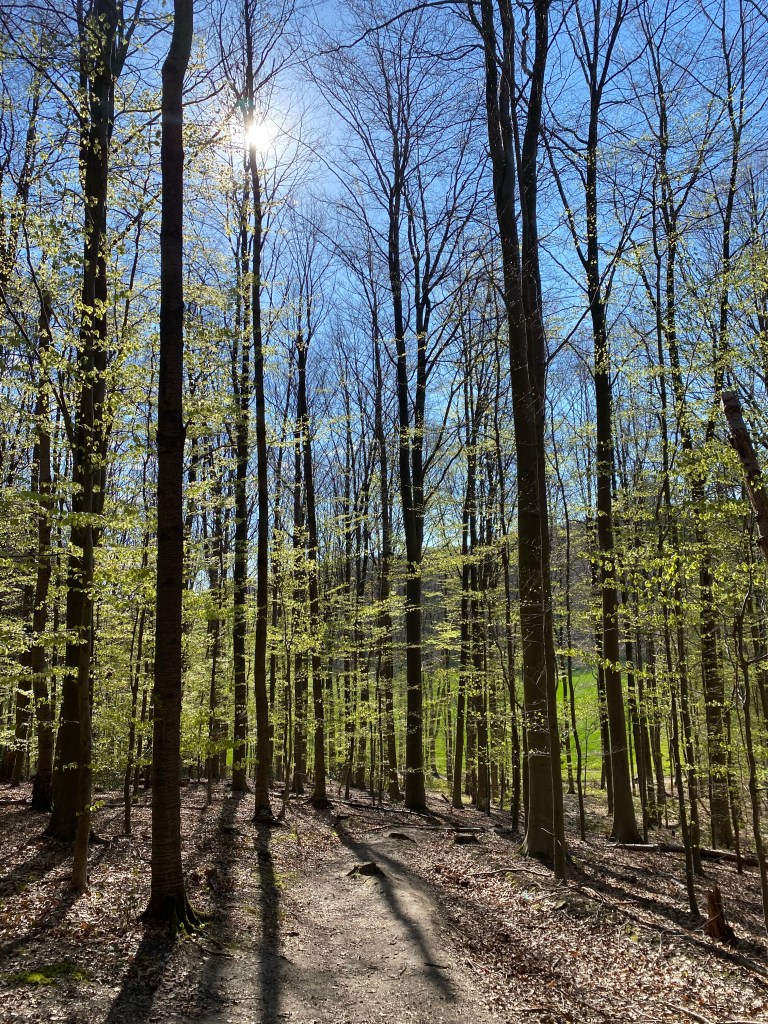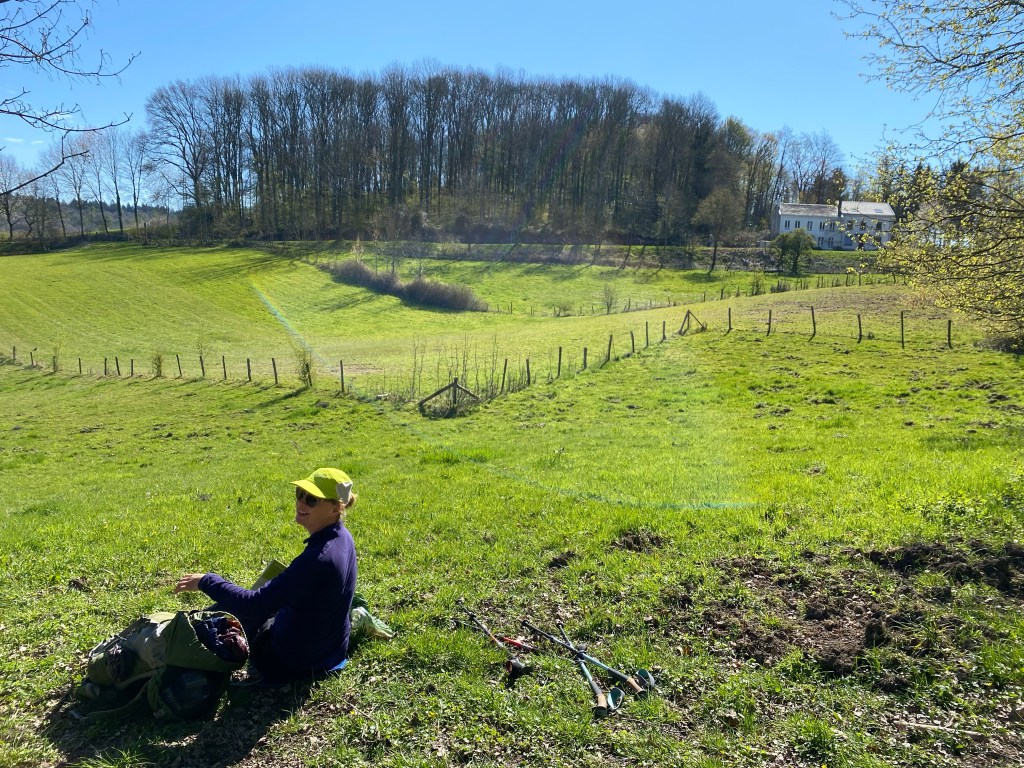 We lopen nu wel echt bergje op en bergje af en slingeren lekker door het bos. Het is vandaag duidelijk drukker dan gisteren. Het lijkt wel zaterdag!