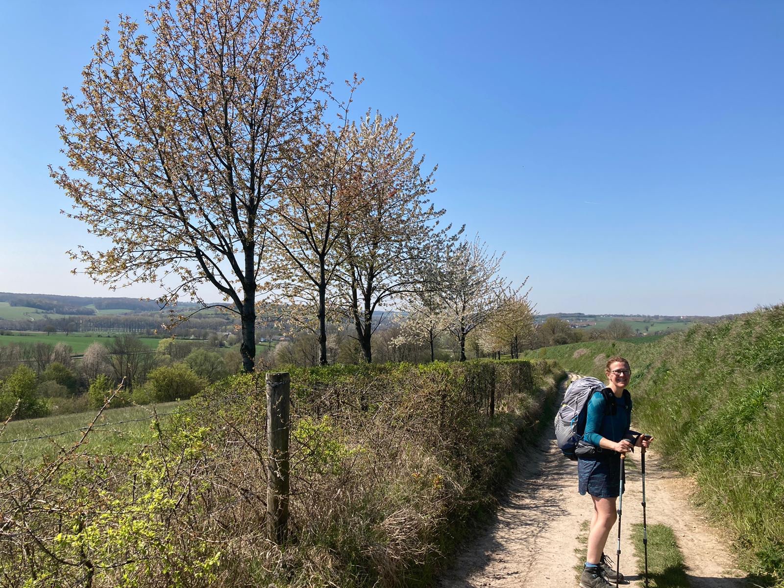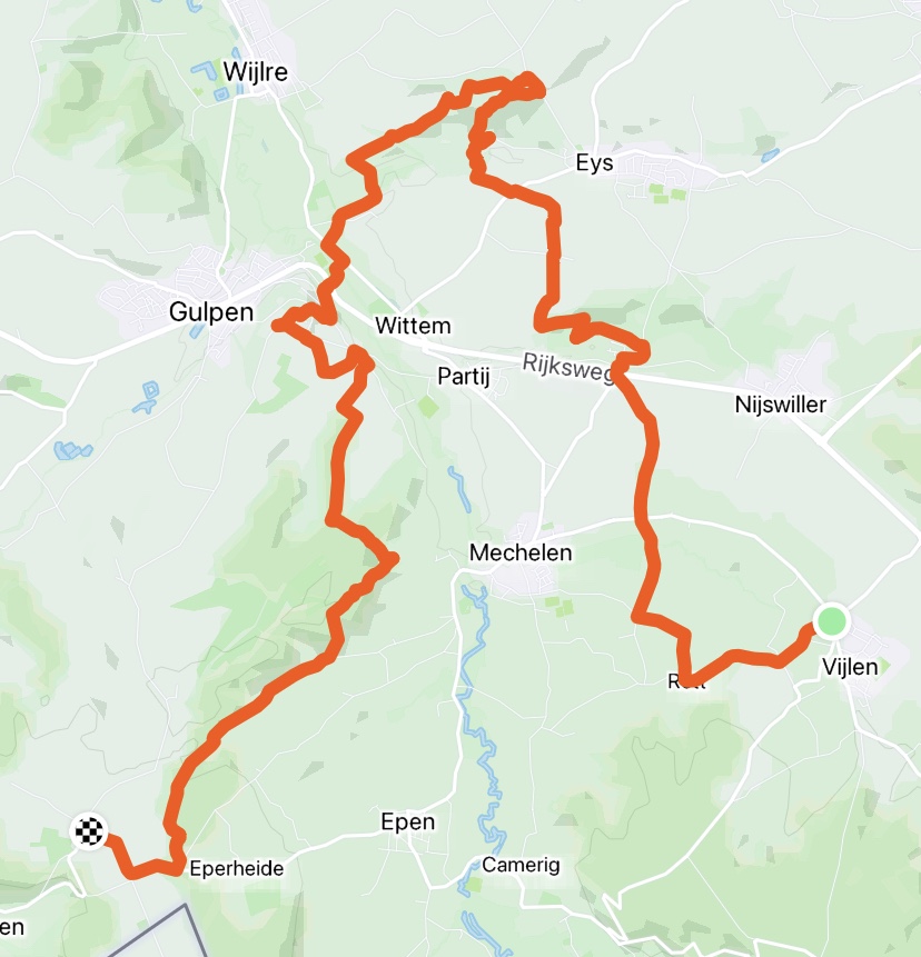 Vandaag loopt de route van Vijlen naar Heijenrath. Ongeveer 21 km is het plan, maar we vergeten Strava aan te zetten, dus het blijft een gok en aan het eind van de dag voelt het als 25km. Voeten zijn moe! Allebei een blaar op het kleine teentje. Zouden we zusjes zijn?! 🤪