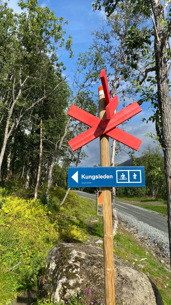 We lopen door een gangetje naar de andere kant van het gebouw en daar staat een kar met alle bagage. Je pakt je eigen rugzak en loopt op je gemak naar het Fjallstation om een gasfles te kopen en de drinkflessen met water te vullen.