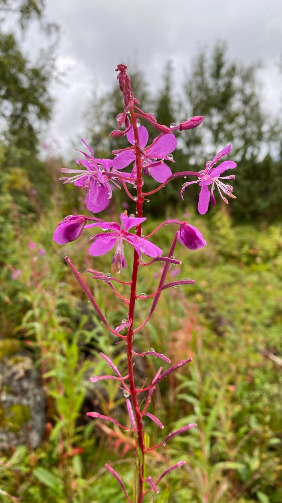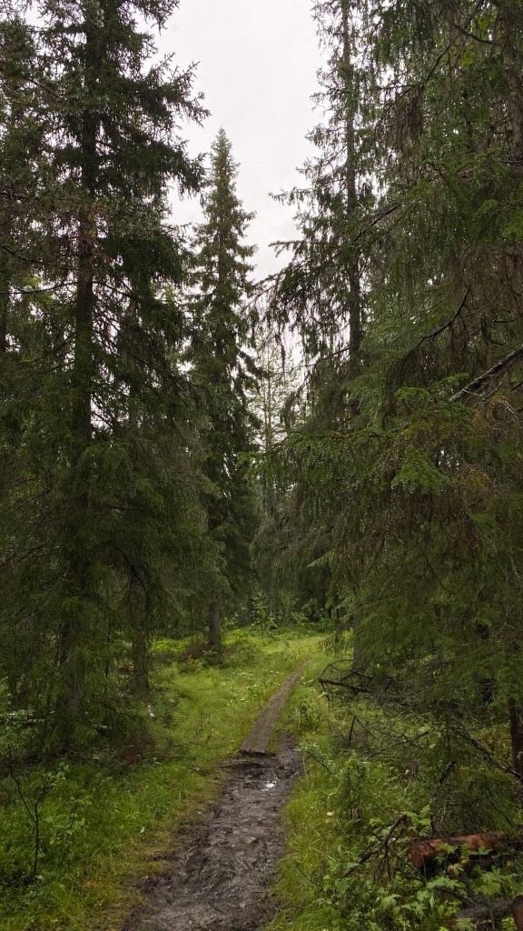 Onderweg struikelen we bijna over de rendier keutels en al gauw weten we waarom… vlak voor ons draaft een kudde rendieren uiteen van het pad. Geschrokken van een roze regenjack en de stilte die bij die roze regenjas hoort 🤪 ze heten niet voor niets rendieren… ze rennen wat af! En vooral die met de geweien zijn zoooo mooi!