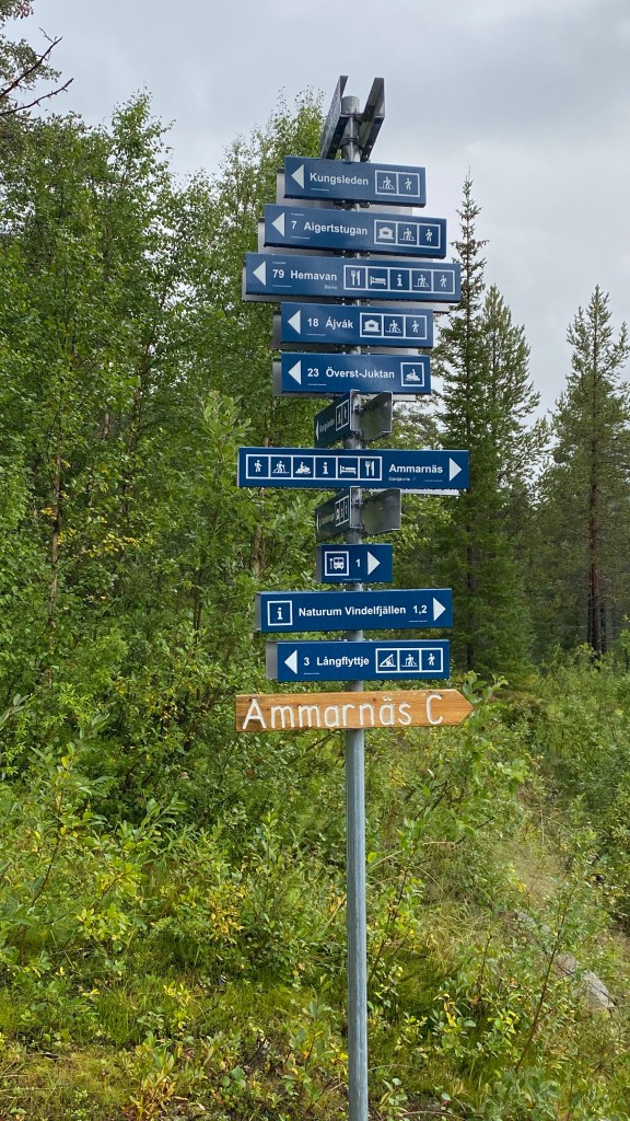 Na Aigert fjallstation is het nog maar 8 km downhill naar Ammernäs, waar we een hotel willen boeken en onze natte en vieze kleding willen laten wassen.