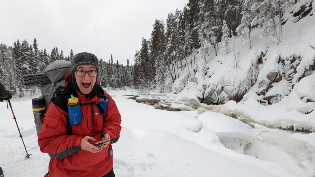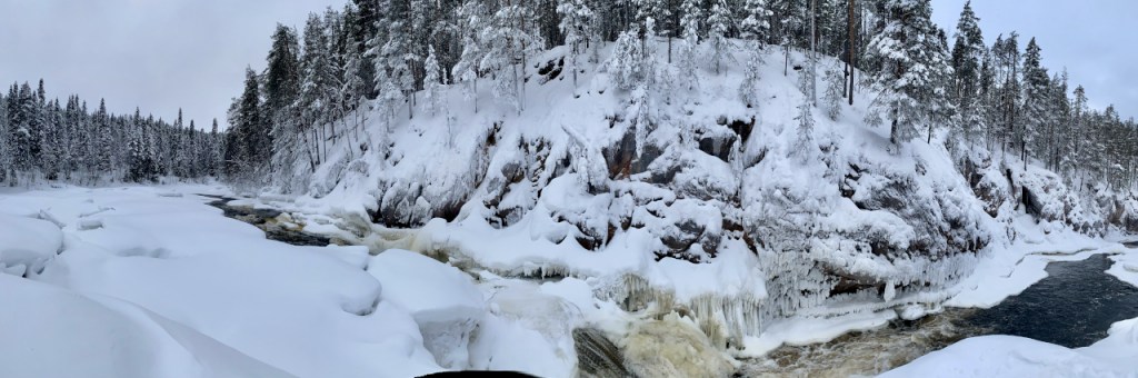 De hangbruggen en de waterval met de ijspegels langs de rotsen zijn mijn favorieten! De dennenbomen vol sneeuw zijn ook schitterend, maar zeker als je moe begint te worden is de afwisseling door watervallen of riviertjes welkom!