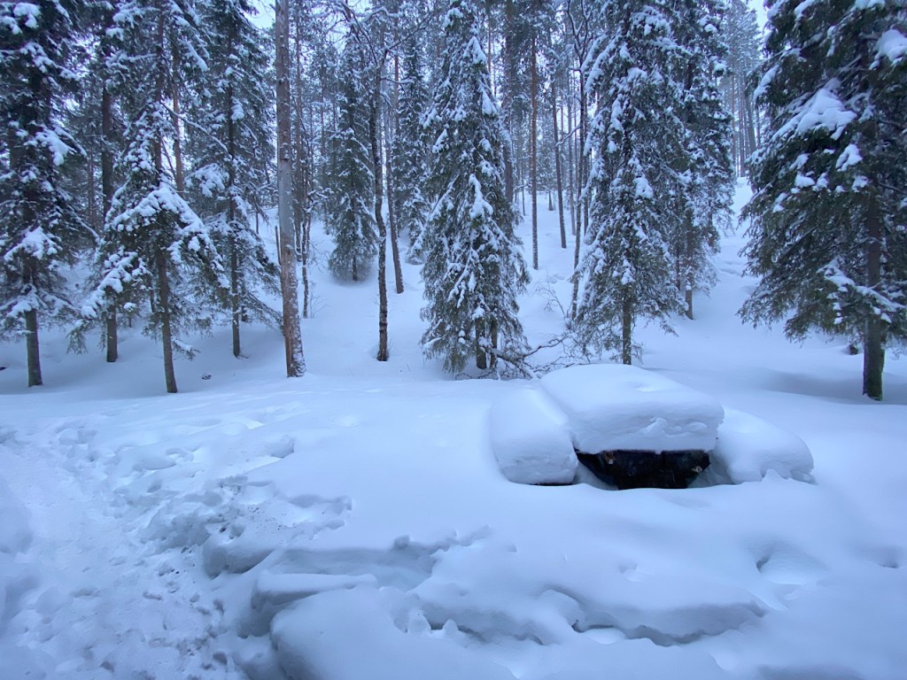 De derde dag start, zoals elke ochtend, met de magische havermout van Nunatak en koffie. Koplampje aan, want de zon is nog niet op in Noord Finland.