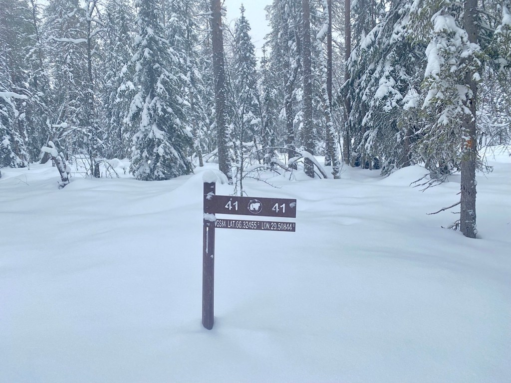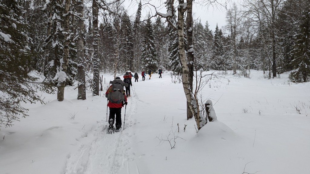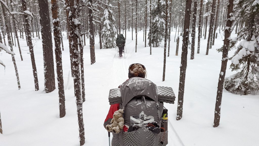 Gelukkig heeft een sneeuwscooter het pad wat voor-gespoord, dat scheelt veel energie en tijd. Vandaag is de route ongeveer 8 kilometer, wat wel fijn is na de lange dag van gisteren.