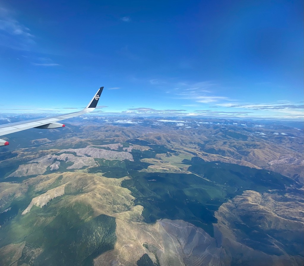 Gauw tassen ophalen en bij domestic opnieuw inchecken. Half uurtje wachten op de laatste vlucht naar Christchurch en dan nog anderhalf uur daar naartoe vliegen.