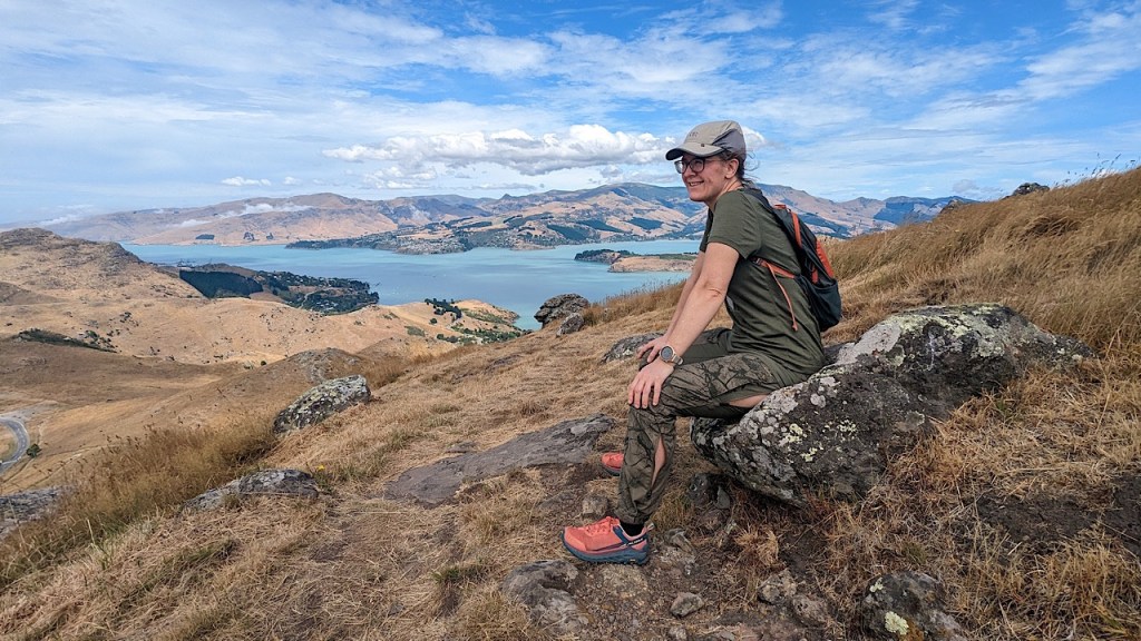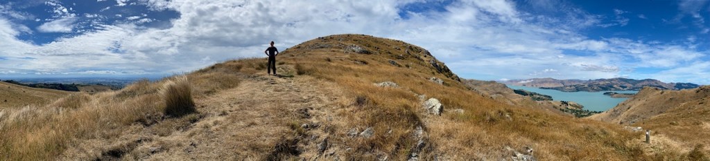 Met het uitzicht op Christchurch genieten we van een tropisch fruitsmoothie en eten we wat bij de auto. Daarna is het tijd voor een wandeling! De crater rim walk lijkt een rondje van 2,5 uur. Prima! Let’s go!