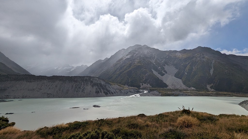 We rijden na het ontbijt een stukje naar het noorden, richting Aoraki/Mt Cook. Wel grappig, dat je dan eigenlijk op de Mt Sefton uitkijkt. Die niets onder doet voor de Mt Cook. Het scheelt zo’n 300 meter. Oh wacht even… dat is de hoogste berg in Nederland zelf. Dus eigenlijk scheelt het dan best wel. Sorry Mt Sefton… you big looser 🤣