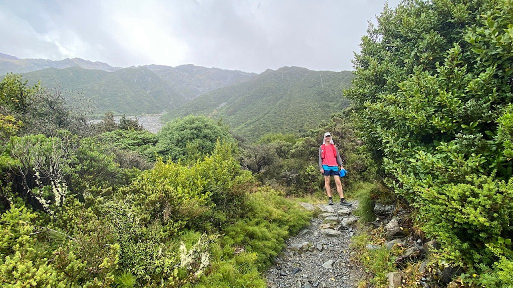 Het is zonnig en tussendoor van die lekkere natwordtregen. Vanwege de warmte hebben we geen zin in regenbroeken, dus kiezen we voor een hardloopshort, lange mouwen shirt tegen de zonnebrand en een regenjas tegen de regen. Fraaie mode combinatie, but who gives a f* 🤪