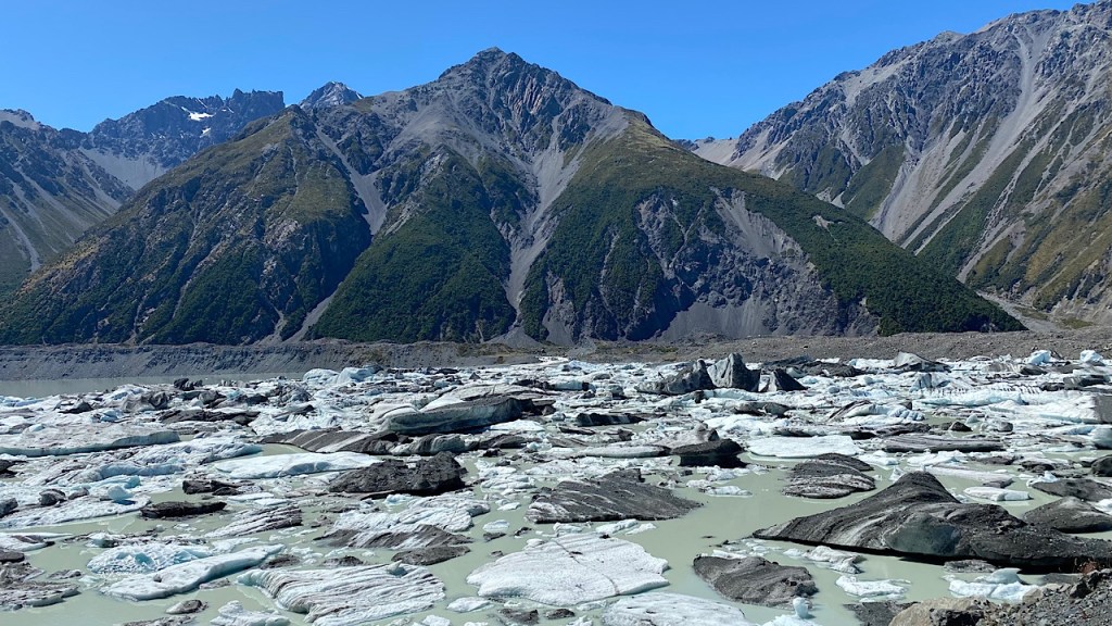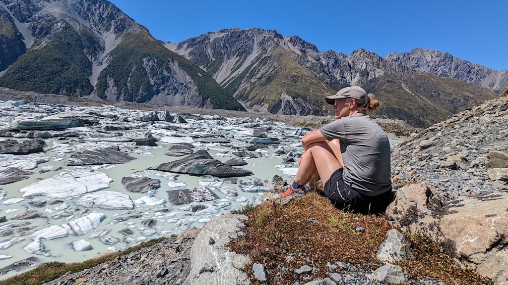 Met de auto rijden we daarna nog even door naar Tasman lake waar je nog meer ijsschotsen kunt bekijken en kunt genieten van het prachtige uitzicht. Hoppa! Weer een ochtend met 24000 stappen 😁