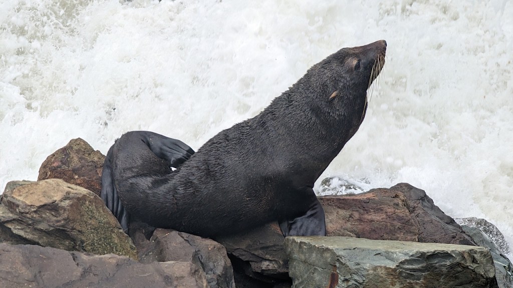 We rijden nog even naar de baai om de hoek bij Bushey Beach omdat daar geeloog pinguïns zouden zitten. Maar ook daar zijn helaas geen waggelvriendjes te vinden. Wel nog meer zeeleeuwen, wat ook leuk is.