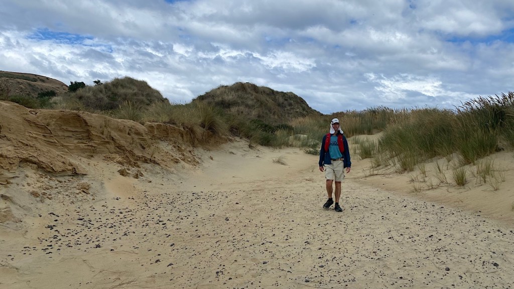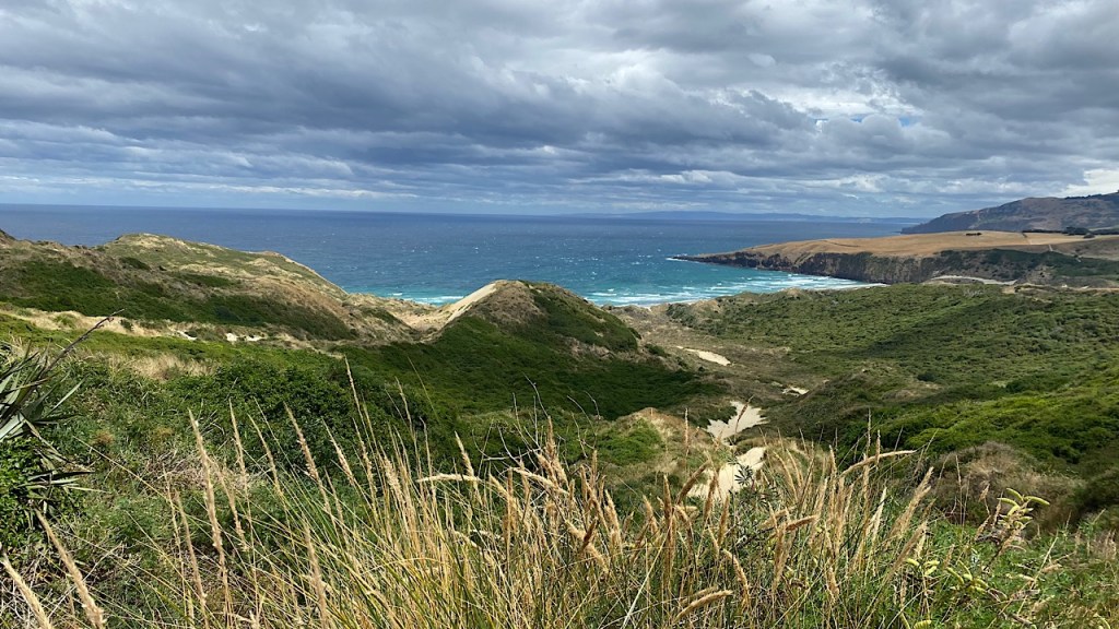 Snel wel even wat boodschappen daar gedaan en doorgereden naar de peninsula er rechtsboven om naar sandfly bay te gaan voor een mooie wandeling door de duinen en over het strand.