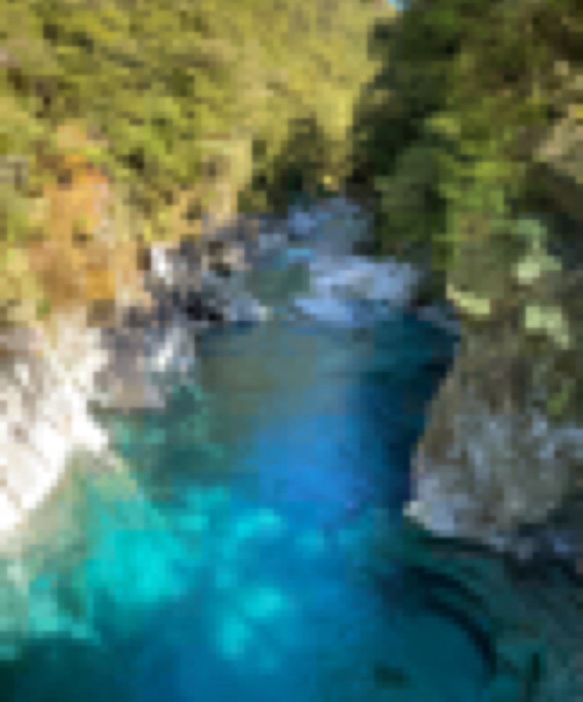 Verderop snappen we wat Blue Pools is. Gaaf zeg. Zulk helder en blauw water. Een aantal mensen zwemmen erin. Je hoort ze happen naar lucht vanwege de temperatuur š„¶