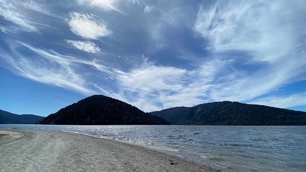 Wat wel bizar is, om te bemerken, dat hier in het voorjaar een flinke bak met water doorheen stroomt en je nu een flink aantal meters over de keien geen druppeltje water tegenkomt. Het heeft hier volgens de Kiwiās al weken niet geregend. In het Fiordland regent het gemiddeld 7 meter per jaar! met uitschieters naar 12 meter per jaar.