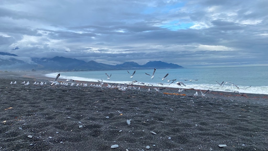 Zoals gezegd werden we niet blij van de camping The Store. Wel van hun koffie 😁. Daarna reden we door naar Kaikoura.
