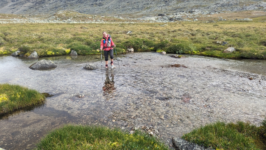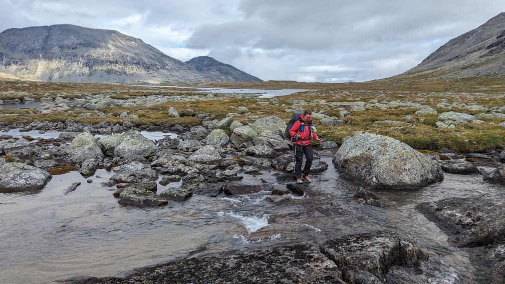Onderweg zien we veel moeras, vlaggetjesgras, boulderfields, stroompjes en mini meertjes, waar we soms met droge voeten overheen kunnen.