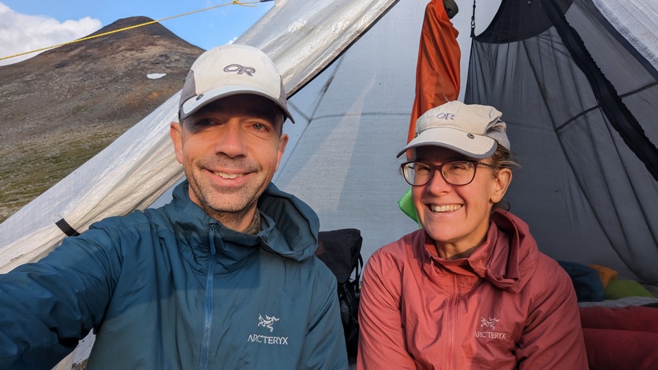 We hebben precies voldoende licht-tijd over om water te gaan halen, rustig te koken en daarna vroeg onder de wol te kruipen. Of eigenlijk onder de dons. De quilt is fantastisch!