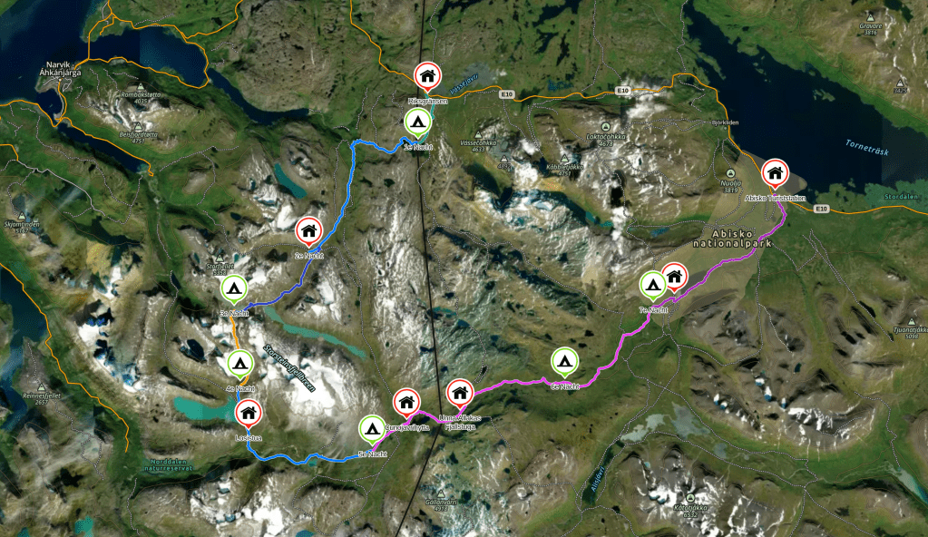 De uiteindelijke route met de overnachtingsplekken (c) Médard